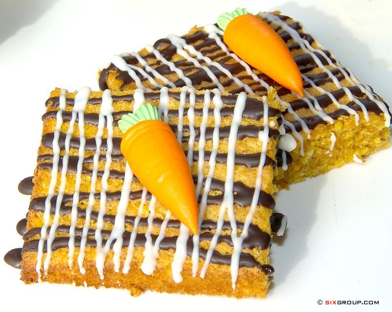 Auskühlen lassen, in Quadrate schneiden und nach Wunsch mit Puderzucker bestäuben oder mit Kuvertüre überziehen.