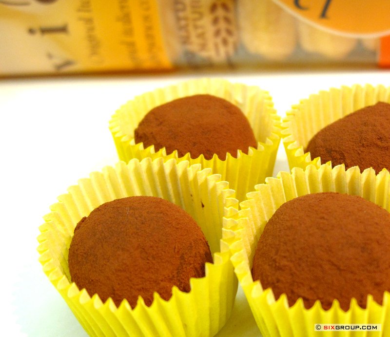 Aus der Trüffelmasse mit einem Teelöffel etwa kirschgroße Stücke abstechen und mit Kakao bestäubten Händen zu Kugeln formen. Auf ein Tablett geben und dick mit Instant- Kakao überpudern, dabei die Kugeln vorsichtig rollen und immer wieder bestäuben, so daß sie vollständig mit Kakao überzogen sind.