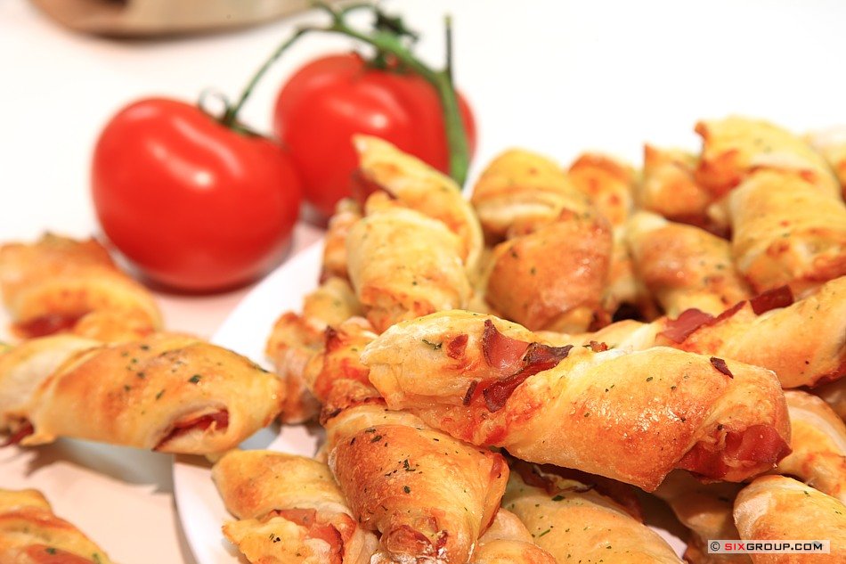 Blätterteig nicht zu dünn ausrollen, darauflegen und mit Tomatenmark bestreichen. Mit Rohschinken belegen.